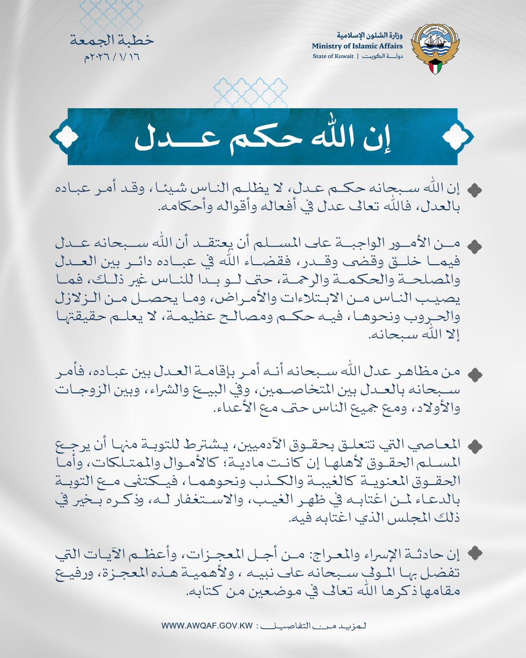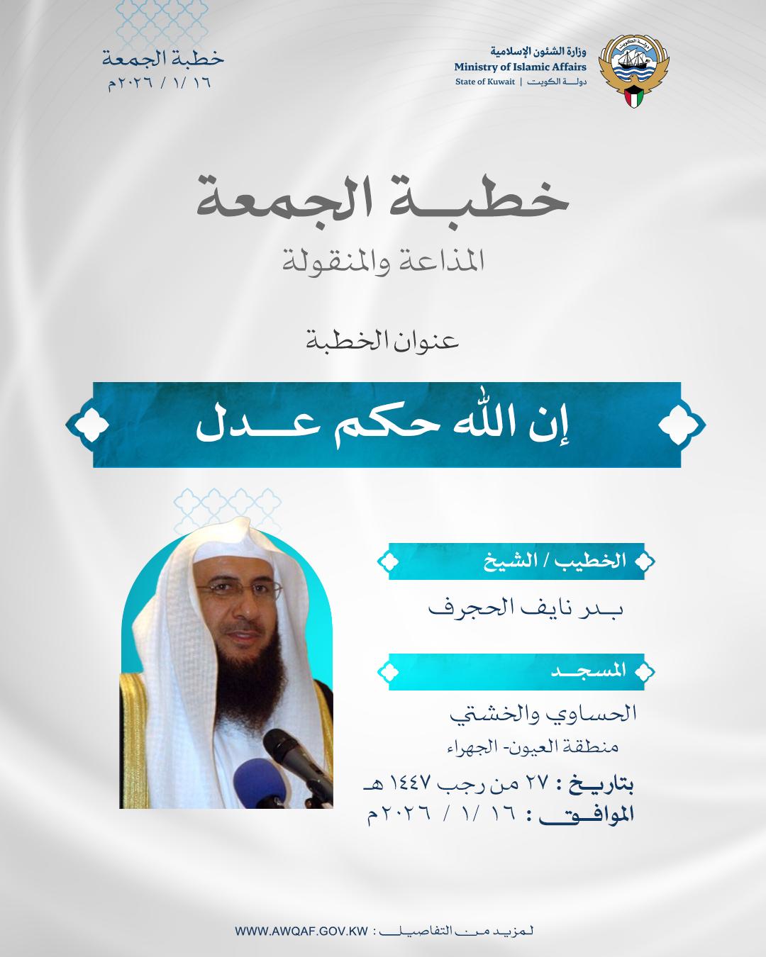 بتاريخ 27 من رجب 1447هـ الموافق 16 /1 / 2026م