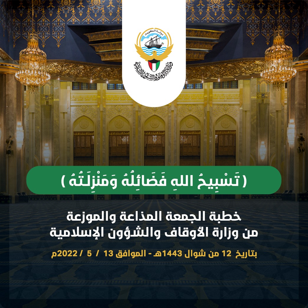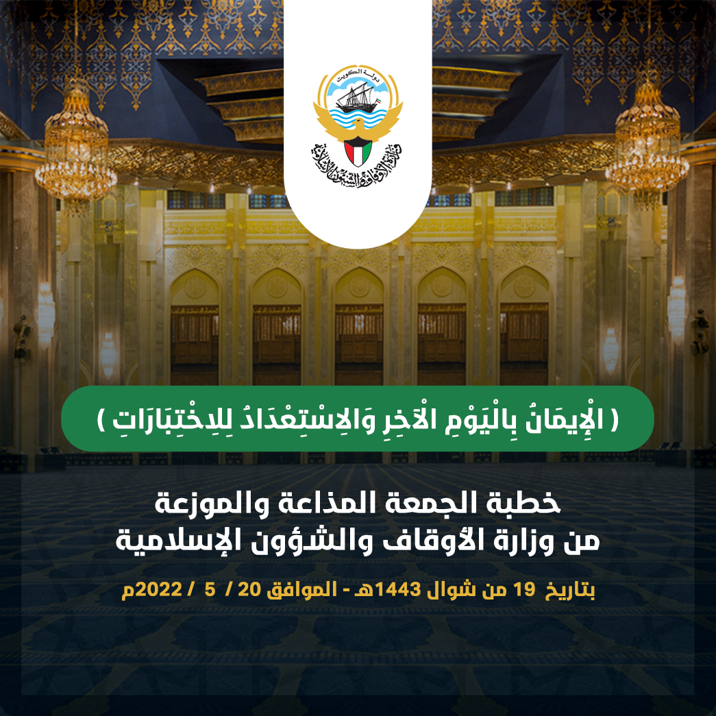 خطبة الجمعة المذاعة والموزعة من وزارة الأوقاف والشؤون الإسلامية بتاريخ 19 من شوال 1443هـ - الموافق 20 / 5 / 2022م