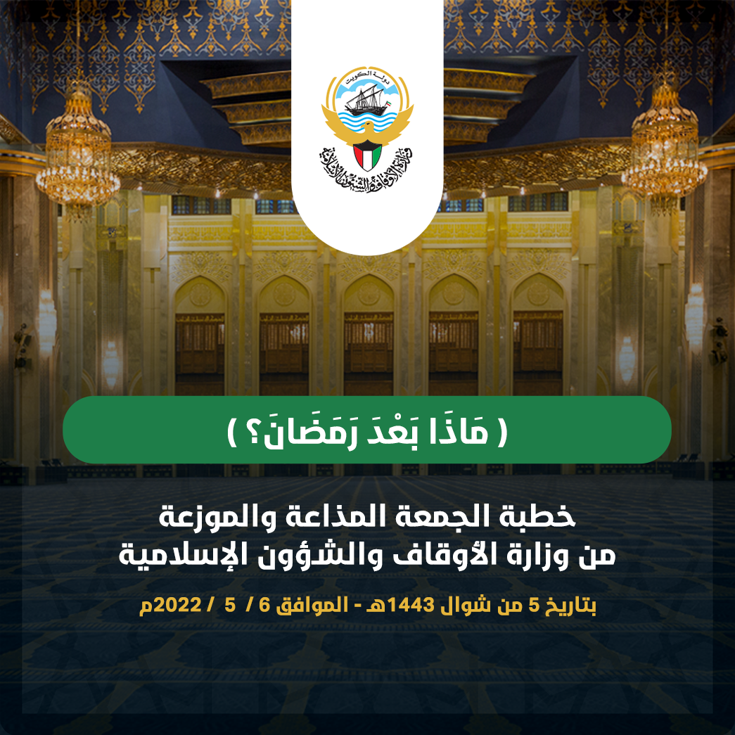 خطبة الجمعة المذاعة والموزعة من وزارة الأوقاف والشؤون الإسلامية بتاريخ 5 من شوال 1443هـ - الموافق 6 / 5 / 2022م
