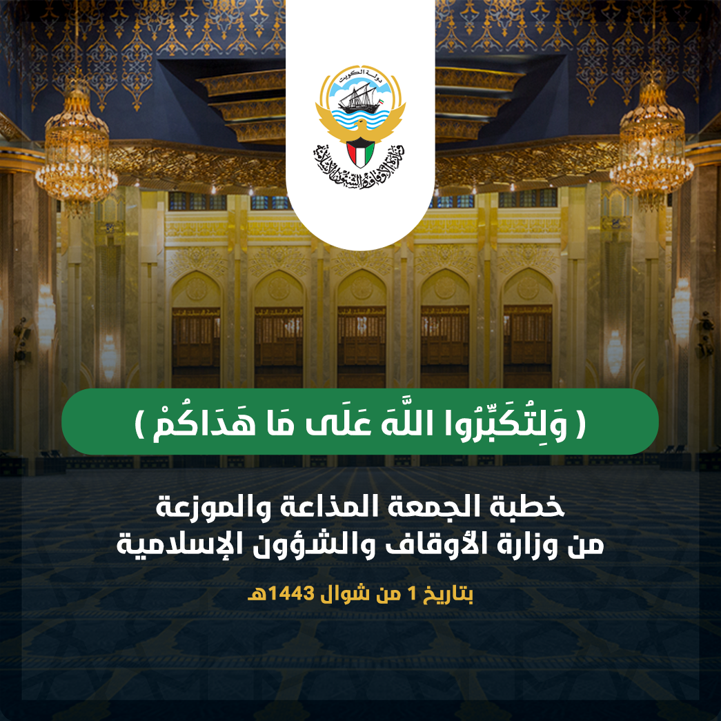 خطبة عيد الفطر المبارك المذاعة والموزعة من وزارة الأوقاف والشؤون الإسلامية بتاريخ 1 من شوال 1443هـ