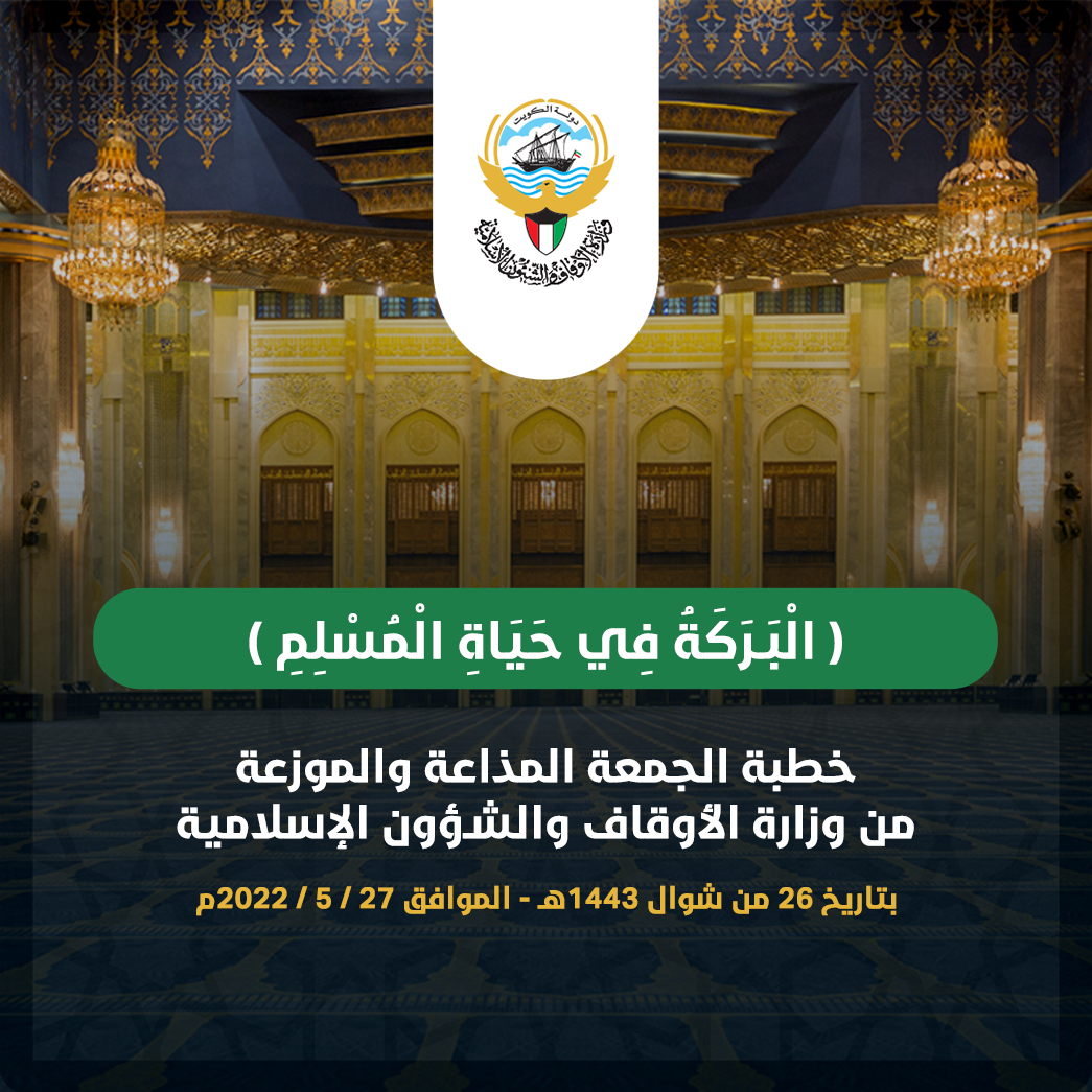 خطبة الجمعة المذاعة والموزعة من وزارة الأوقاف والشؤون الإسلامية بتاريخ 26 من شوال 1443هـ - الموافق 27 / 5 / 2022م