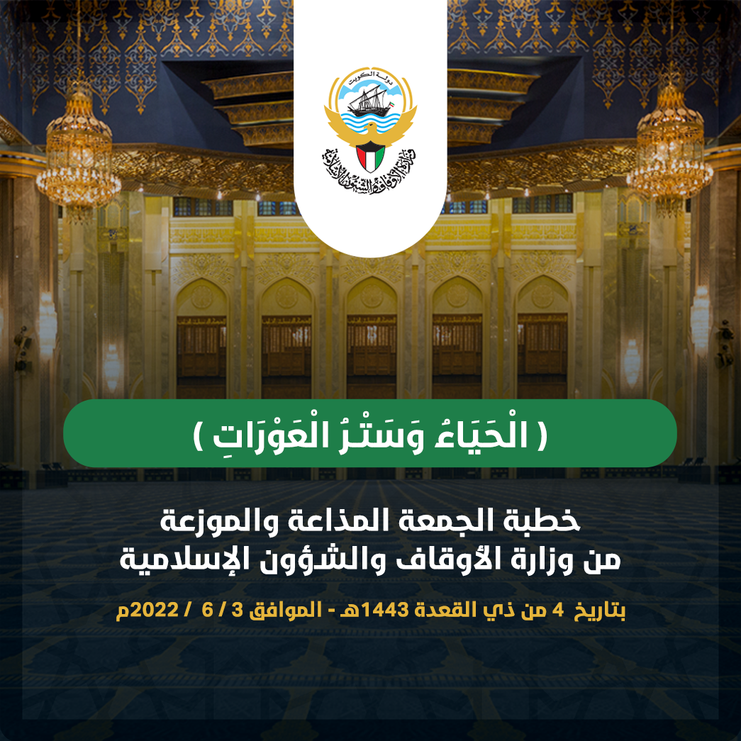 خطبة الجمعة المذاعة والموزعة من وزارة الأوقاف بتاريخ 4 من ذي القعدة 1443هـ - الموافق 3 / 6 / 2022م