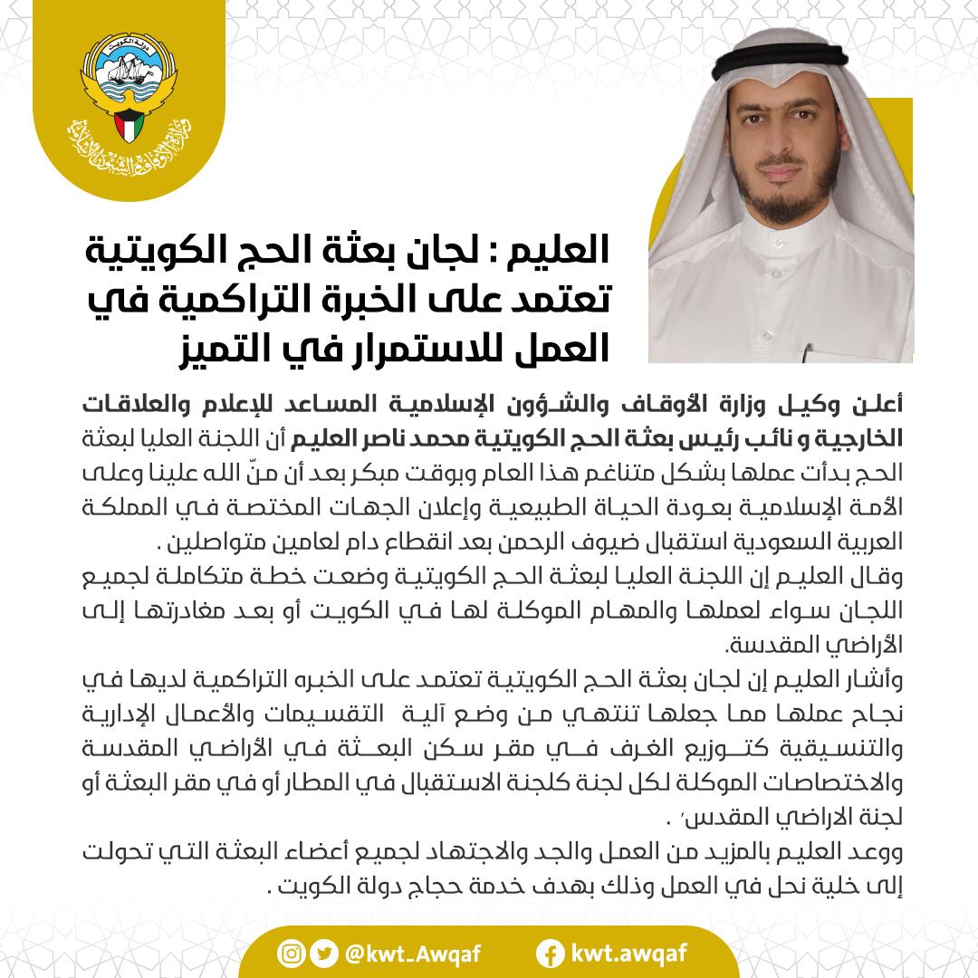 العليم : لجان بعثة الحج الكويتية تعتمد على الخبرة التراكمية في العمل للاستمرار في التميز